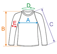 DimensioneLarghezza (A)Lunghezza (B)Dl. mani (C)Collo (D)Shir. mani (E