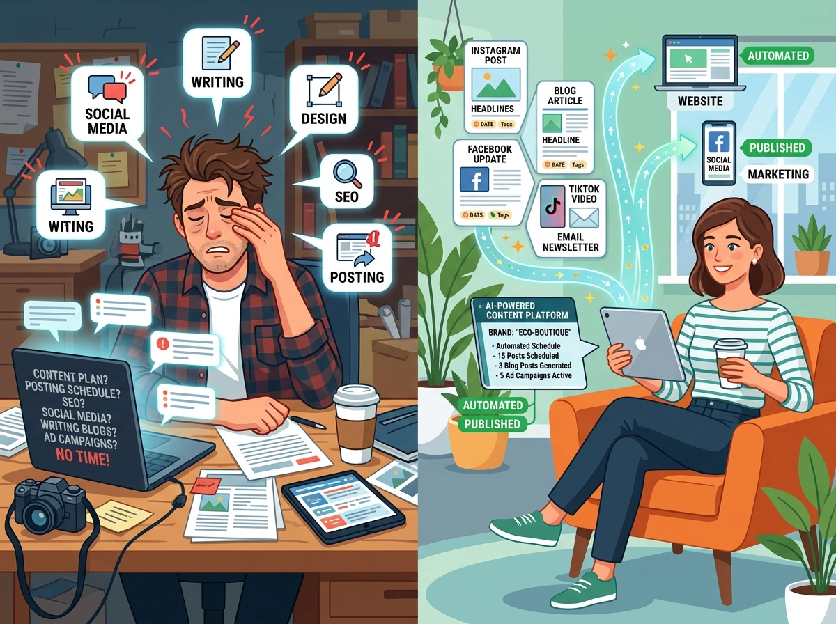 Сучасний малий бізнес стикається з парадоксом: усі розуміють важливість контент-маркетингу, але далеко не всі можуть його ефективно реалізувати. Instagram-продавці, власники невеликих онлайн-магазинів, дропшипери — всі вони знають, що регулярні публікації, якісні описи товарів та залучаючий контент є основою успіху. Проте реальність виглядає інакше.